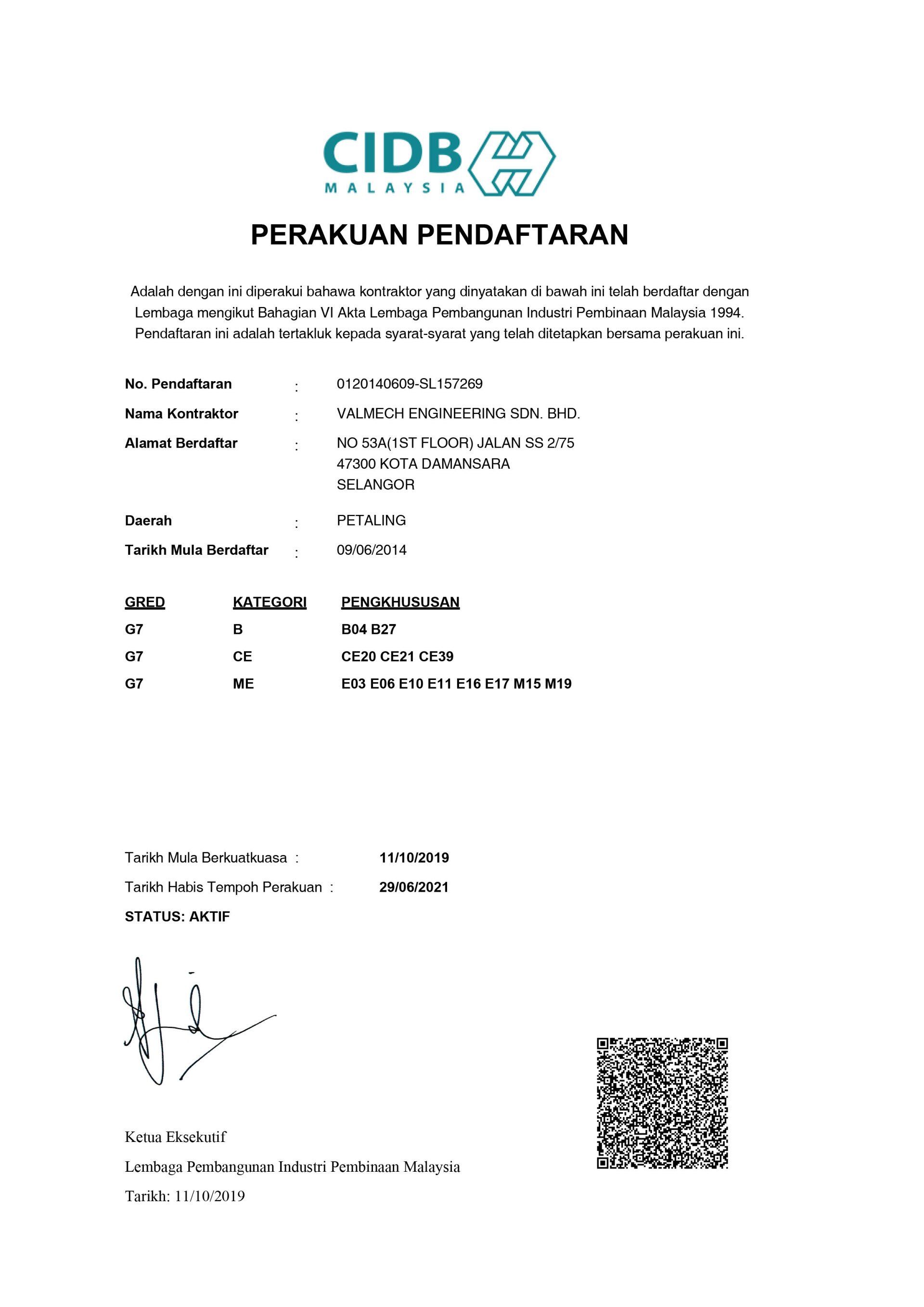 Our company has been certified for CIDB G7, SPAN C1 and ISO, so that you can trust our work and product quality.